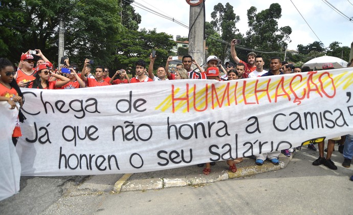Torcida organizada do clube faz protesto antes da vitória contra o Figueirense